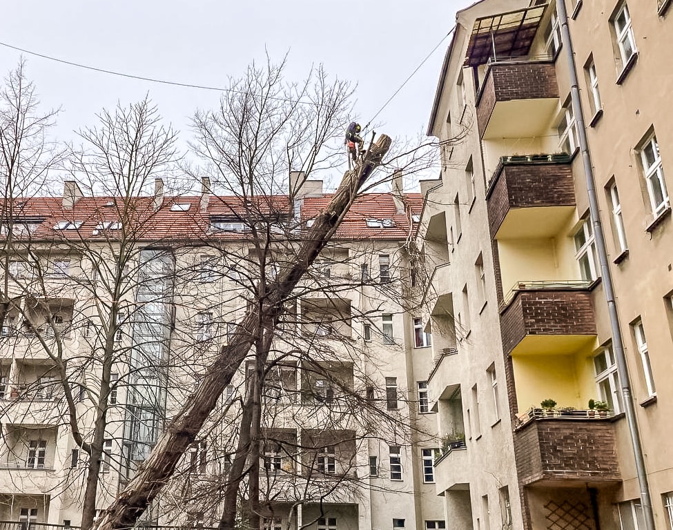 Ob umgestürzter Baum im Innenhof, Ast auf dem Garagendach oder akute Umsturzgefahr an der Straße – wir kommen in alle Berliner Bezirke und handeln schnell.